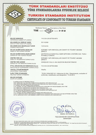 TS EN 12004VitrA Fix Tile Adhesives